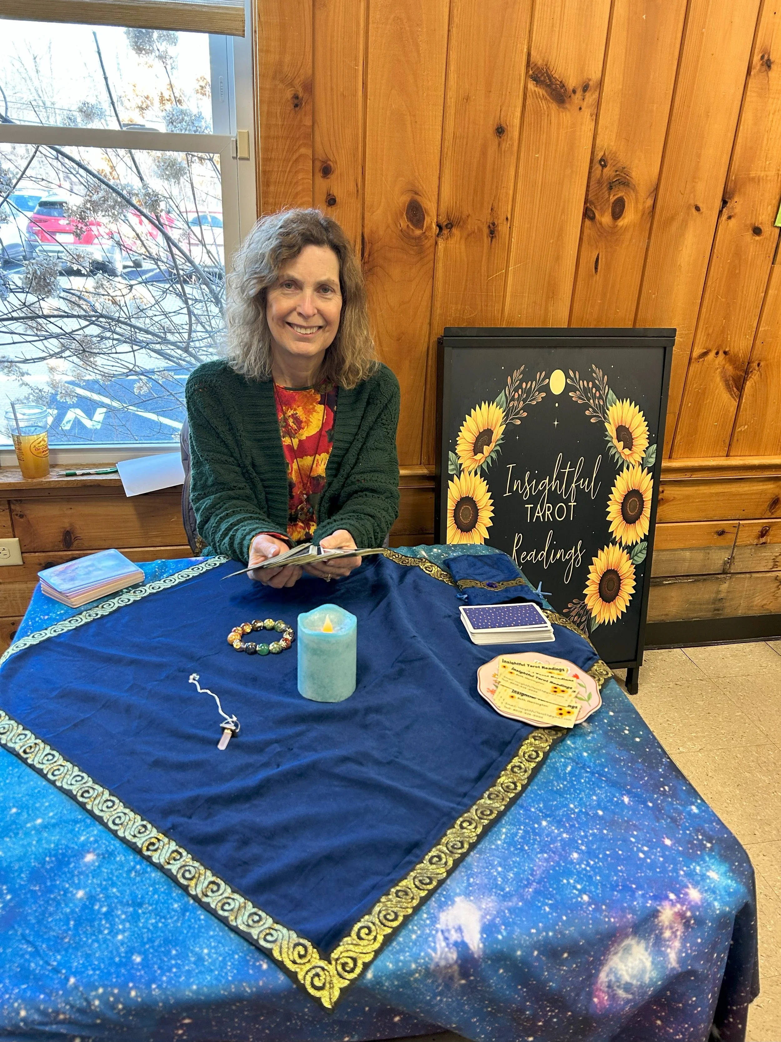 Beth attends area events and fairs to meet people and read Tarot Cards. She also reads Tarot by appointment only at Naturopathic Healing Spaces, 7 Main Street in Plymouth, NH.